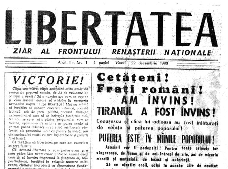 În după-amiaza zilei de 22 Decembrie 1989 a apărut primul ziar al Revoluţiei române – „Libertatea”. În seara aceleiaşi zile apărea şi primul număr al ziarului „Tineretul liber”.