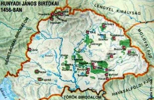 Teritorii administrate de Iancu de Hunedoara la 1456