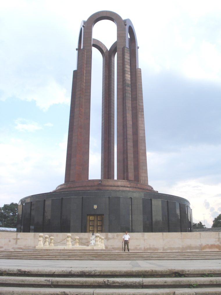 Monumentul este construit pe platoul care domină Parcul Libertății, în locul în care se afla Palatul Artelor, transformat mai târziu în Muzeul Militar și cascada din fața acestuia.