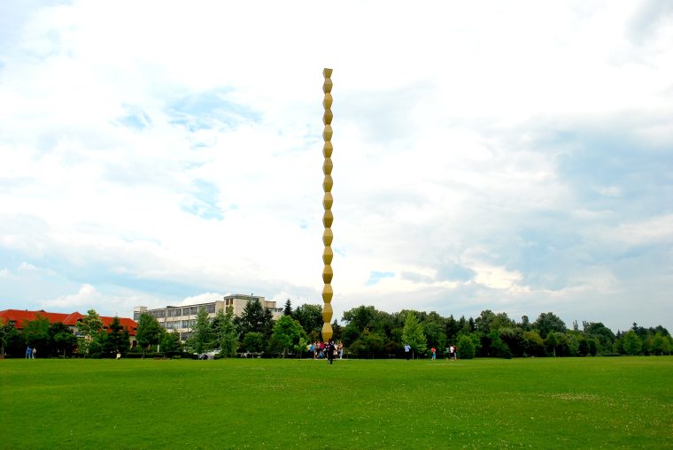 Coloana Sacrificiului infinit dat de eroii români pentru reîntregirea neamului. Numărul modulelor din care este alcătuită coloana reprezintă anul când România a intrat în Primul Război Mondial și se termină cu o jumătate de modul, reprezentând jumătatea anului respectiv.