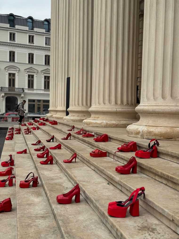 La doar câteva zile după adoptarea legii privind combaterea femicidului, o acțiune simbolică a avut loc în memoria victimelor violenței domestice. Mai multe perechi de pantofi roșii au fost așezați pe treptele de la Ateneul Român. La acțiune a participat și deputata PNL de Argeș, Alina Gorghiu.