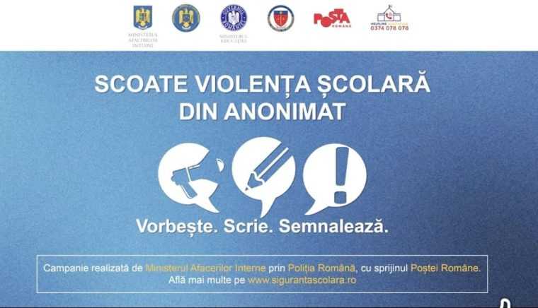 Elevii au nevoie de instrumente pentru a raporta abuzurile și violența atunci când se tem să vorbească. Din 30 ianuarie 2026, Poșta Română s-a alăturat campaniei naționale „Scoate violența școlară din anonimat”, inițiată de Inspectoratul General al Poliției Române, prin Direcția Siguranța Școlară, în parteneriat cu Ministerul Educației și Cercetării.