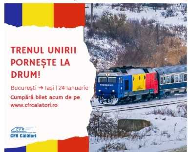 ”Sâmbătă, 24 ianuarie 2026, va marca împlinirea a 167 de ani de la Unirea Principatelor Române prin circulaţia simbolică a „Trenului Unirii” (IC 561). Această iniţiativă onorează moştenirea lăsată de Alexandru Ioan Cuza şi celebrează primul pas fundamental spre înfăptuirea statului naţional unitar român. În această zi de sărbătoare naţională, legătura feroviară între Bucureşti şi Iaşi va fi asigurată de trenul IC 561, care va purta numele simbolic de „Trenul Unirii” şi va pleca din Gara de Nord la ora 06:45, fiind remorcat de o locomotivă special decorată în culorile steagului naţional. Totodată, pentru a marca importanţa evenimentului în comunităţile locale, trenul IC 561 va efectua staţionări suplimentare în staţiile Bârlad şi Vaslui”, anunţă joi CFR Călători.