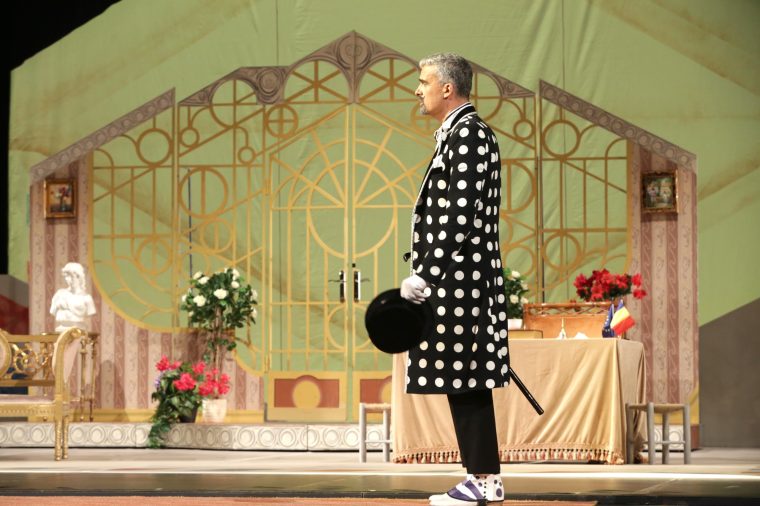 apar veste cu imprimeu de bancnote, având chipul lui Caragiale, o idee vizuală strălucită, transformându-l pe autor în „moneda de schimb” a lumii pe care a ironizat-o.
