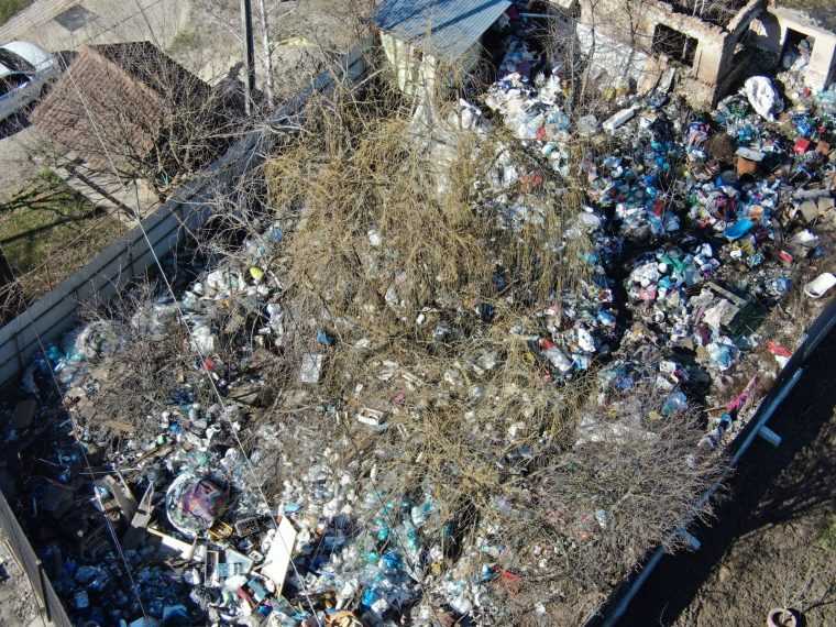 Imaginile filmate cu drona din dotarea Gărzii Naționale de Mediu Argeș arată o cantitate semnificativă de deșeuri, depozitate atât în curte, cât și pe domeniul public. Gunoaiele provin, în mare parte, de la platformele publice de colectare.