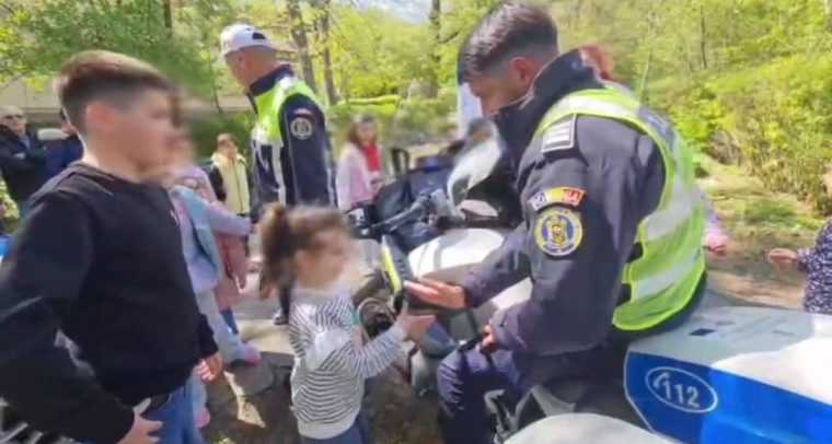 Copiii au putut adresa întrebări și au primit explicații privind modul de intervenție al polițiștilor în trafic, cei mici având și ocazia să interacționeze cu tehnica din dotarea poliției rutiere, fiind prezentate materialele și autolaboratorul de siguranță rutieră, o motocicletă de serviciu, precum și un echipaj utilizat în mod curent în activitățile operative.