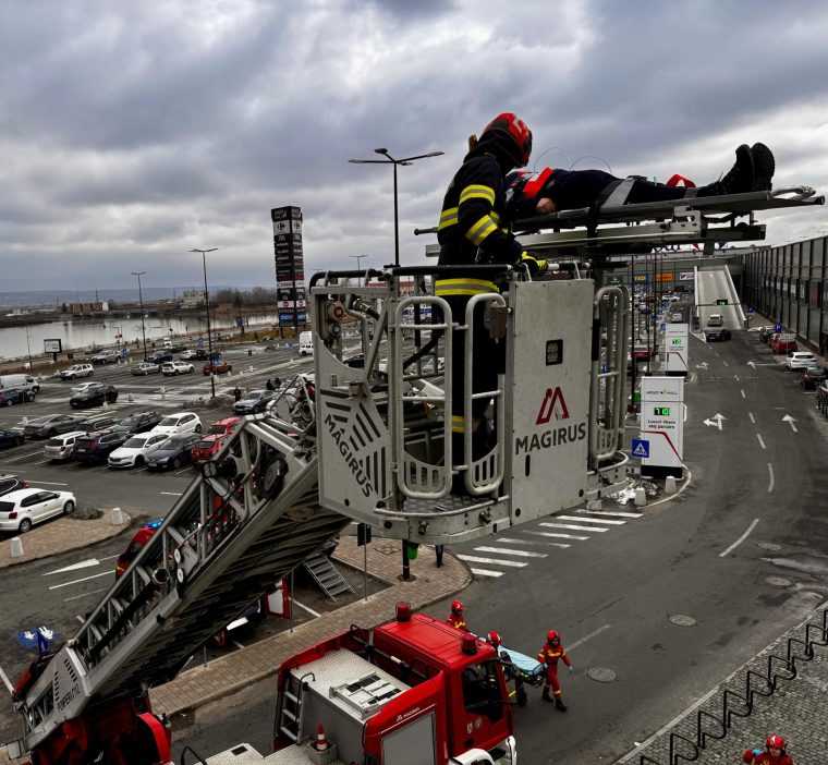 Miercuri a avut loc un exercițiu cu forțe și mijloace ale pompierilor la centrul comercial Argeș Mall din Pitești. Scenariul a inclus simularea izbucnirii unor incendii în zona depozitului și în perimetrul de fast-food, precum și intervenții pentru salvarea unor persoane de la înălțime.