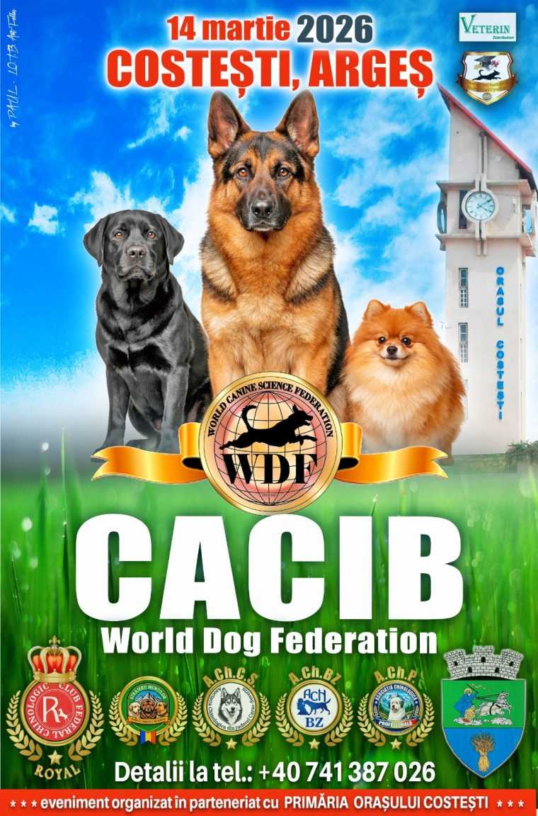 Orașul Costești va găzdui sâmbătă, 14 martie 2026, o expoziție chinologică internațională dedicată câinilor de rasă. Evenimentul C.A.C.I.B. Costești 2026 este organizat de Club Federal Chinologic – Royal în parteneriat cu Primăria Orașului Costești și se va desfășura începând cu ora 10:00 pe Stadionul Orășenesc Costești.