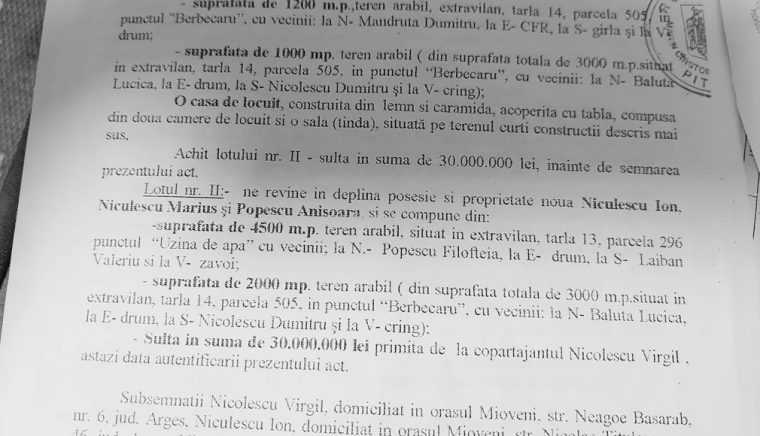 „Mirarea a fost mare când d-nul Drăgan Ion, de la Fondul Funciar Mioveni, ne-a îndepărtat de acest teren pe care l-am dat copiilor, spunându-ne ca această suprafață a fost revendicata de Uzina de Automobile Dacia”.