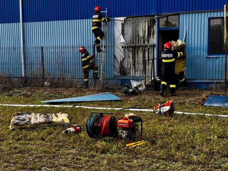 Incendiul se manifestă la acoperiș și în interiorul halei. Până în acest moment, nu au fost identificate victime.