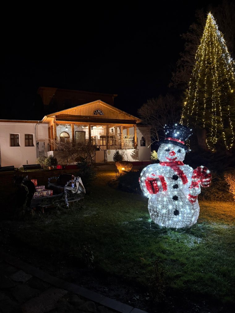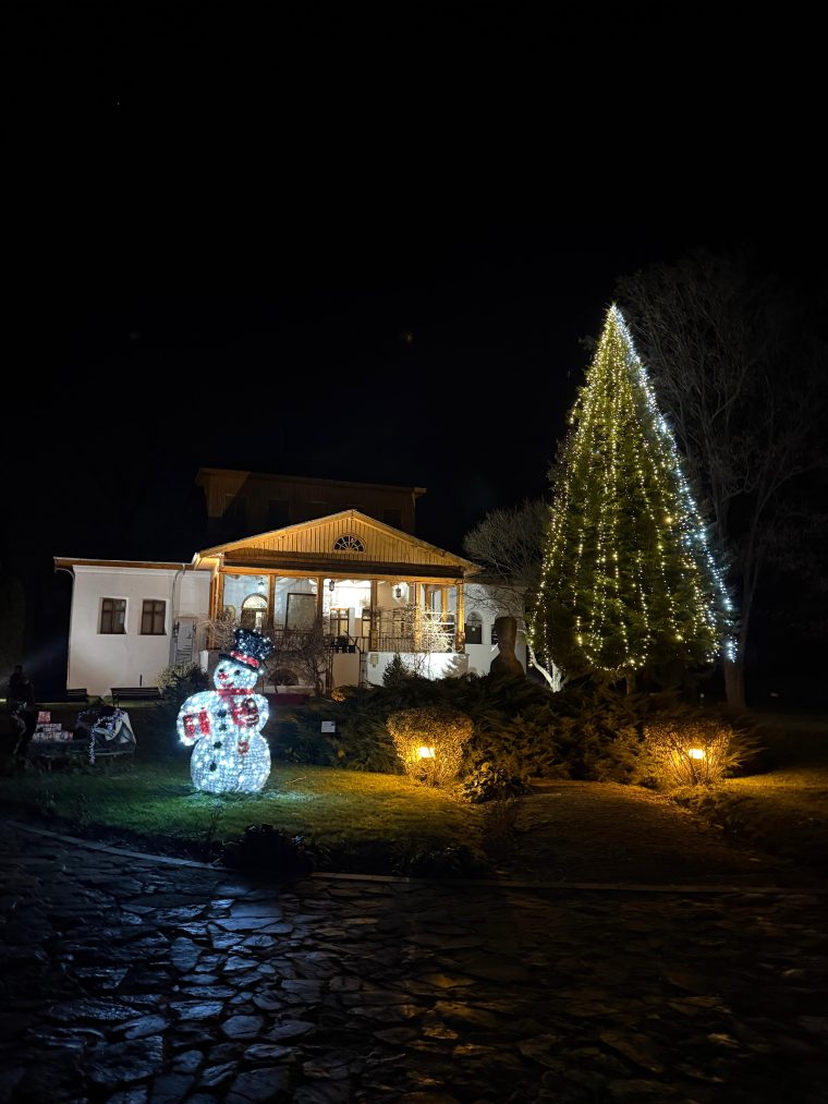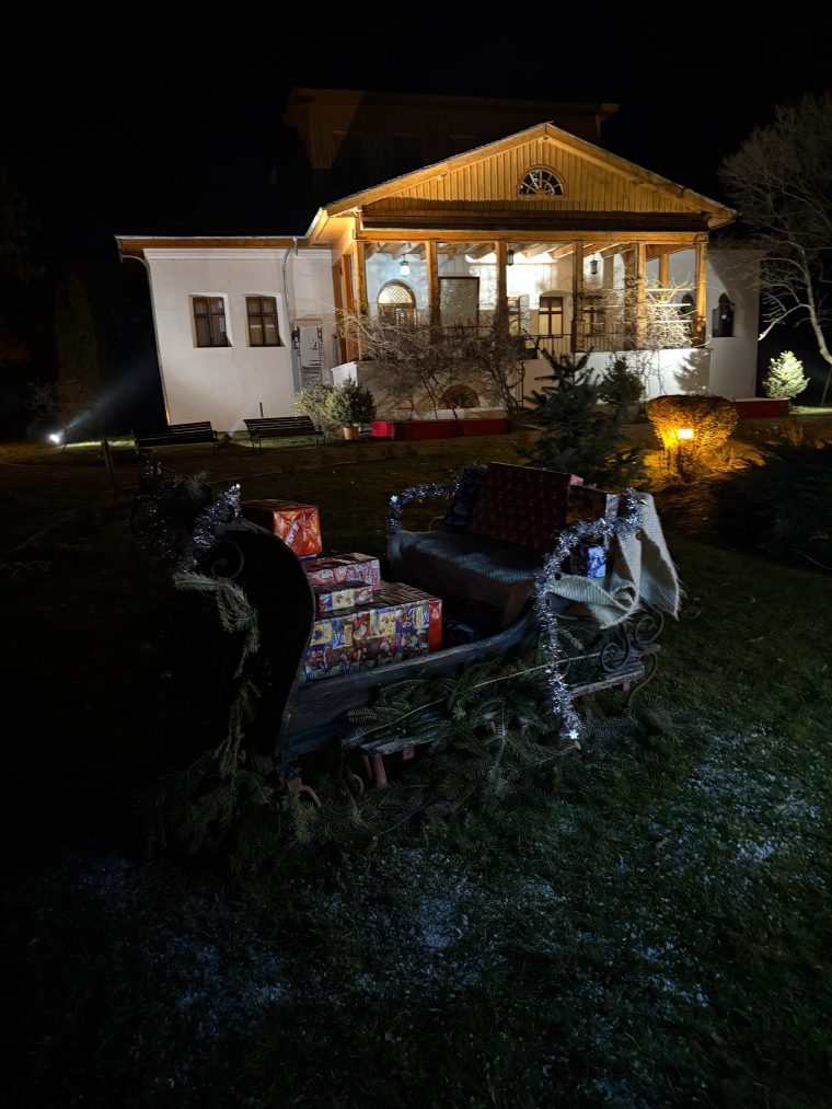 Căsuțele din lemn sunt aprovizionate cu produse handmade unicat și dulciuri artizanale numai bune de pus sub pom in noaptea de Ajun. Iar odată cu lăsarea serii luminițele bradului din fața conacului au dat strălucire festivă a unui loc în care tradiția se împletește cu contemporanul.