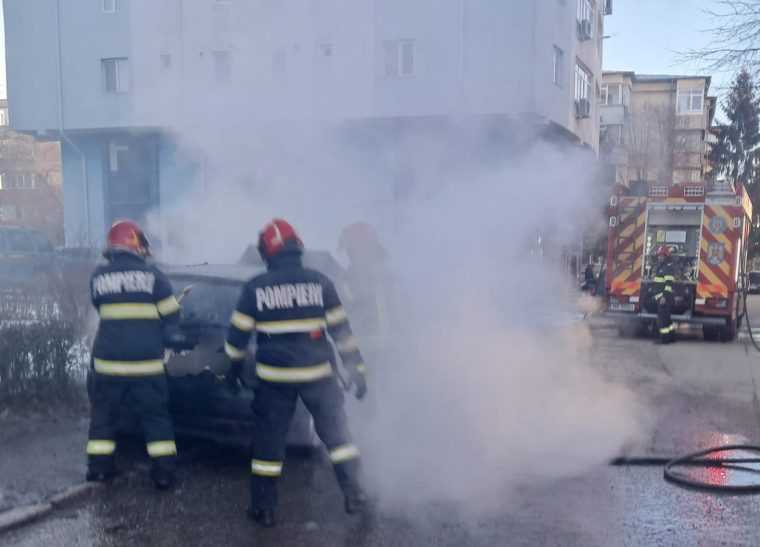 La sosirea forțelor de intervenție, flăcările se manifestau atât la nivelul compartimentului motor al vehiculului, cât și în interiorul acestuia, autoturismul fiind afectat în proporție de 80%.
