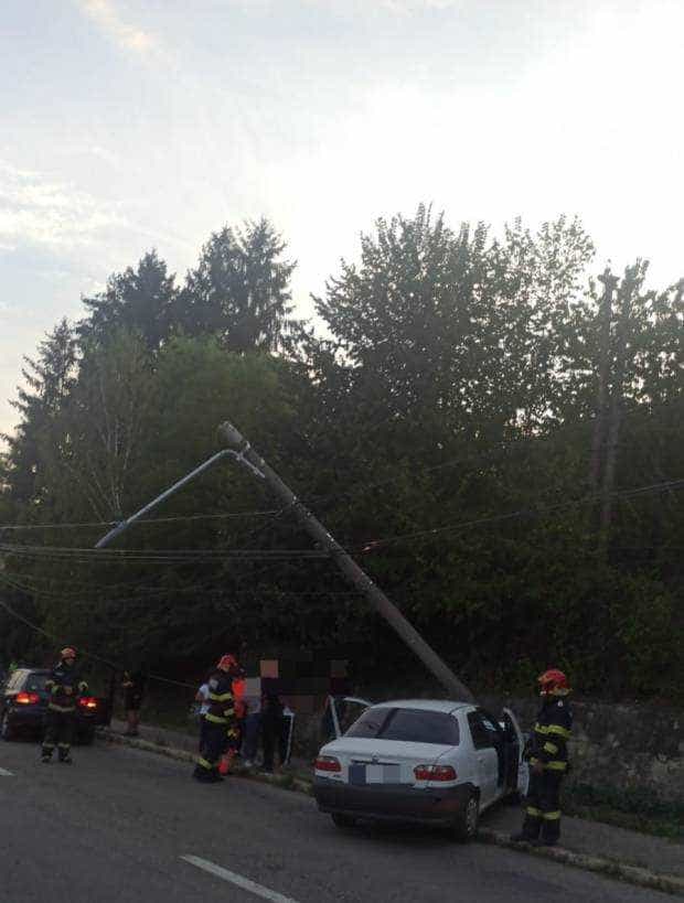 Un autoturism intrat într-un stalp de electricitate în municipiul Câmpulung,pe strada Dragalina, în această seară.