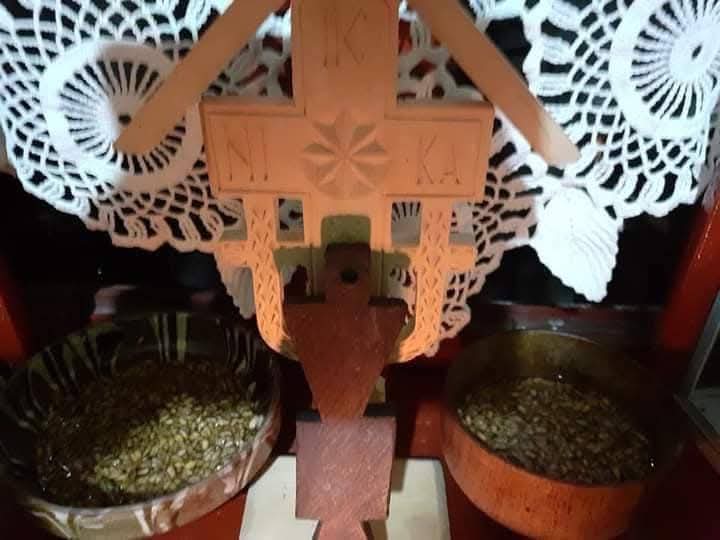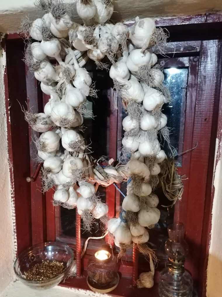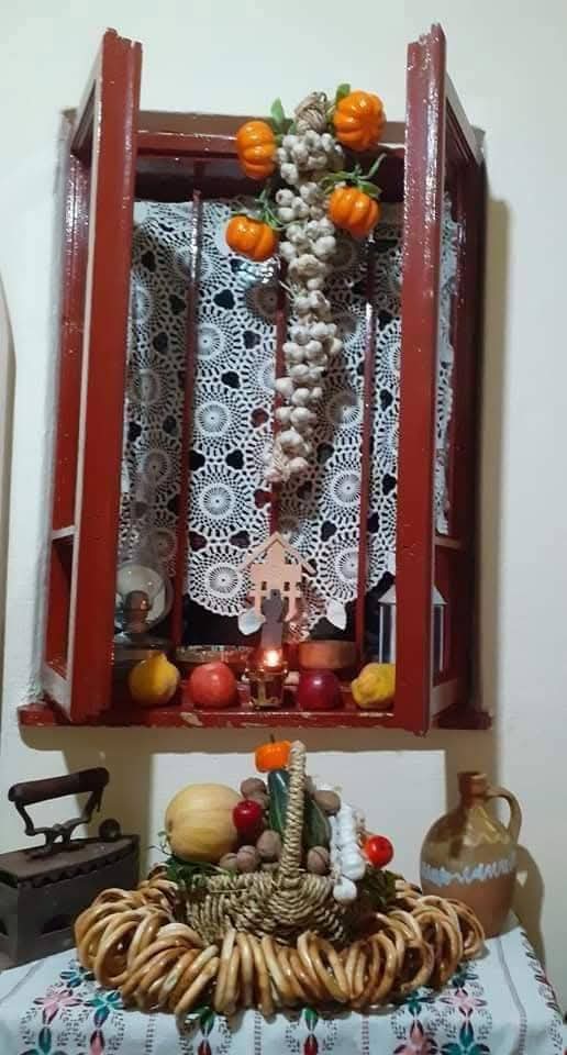Apoi, coasem, împletim, curățăm porumbi, ridicăm turnuri din coceni, cioplim dovleci și facem felinare. Nu uităm nici să punem grâu la încolțit, depănăm firul de ață și de viață, copii și bătrâni ai satului laolaltă, în odăița cu povești”.