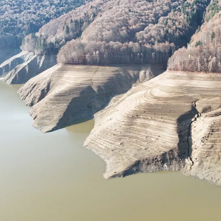 Stâncă în mijlocul lacului Vidraru, până acum ascunsă
