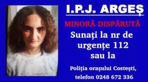 Minoră din Argeș, dispărută. Poliția face căutări Polițiștii din cadrul Poliției Orașului Costești, împreună cu polițiștii Secției de Poliție Rurală... Bianca Solomon 4.02.2024 / 22:02