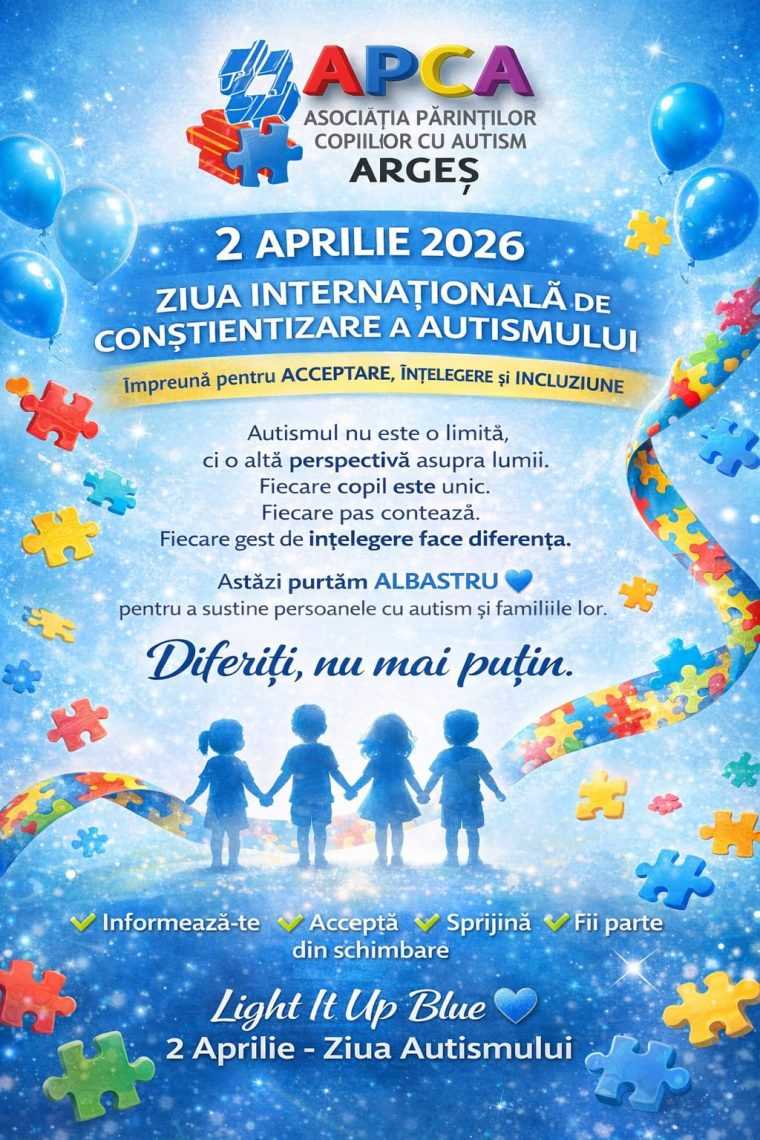 Mesajul nostru este simplu: Înțelege. Acceptă. Sprijină. Include. Mulțumim tuturor instituțiilor, partenerilor, voluntarilor și oamenilor din comunitate care sunt alături de noi și susțin cauza copiilor și persoanelor cu autism”, a transmis Asociația Părinților Copiilor cu Autism Argeș – APCA.